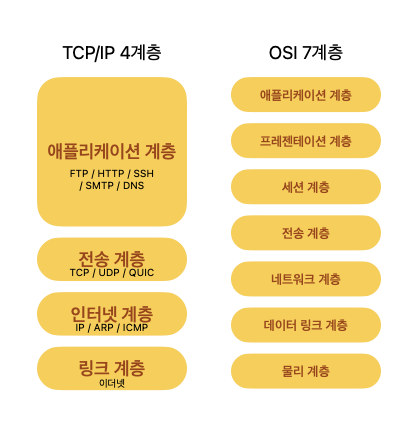 인터넷 프로토콜 스위트(internet protocol suite)는 인터넷에서 컴퓨터들이 서로 정보를 주고받는 데 쓰이는 프로토콜의 집합이며 이를 TCP/IP 4계층 모델로 설명하거나 OSI 7 계층 모델로 설명하기도 합니다. TCP/IP 4계층 모델에 대해서 적어볼까 합니다.